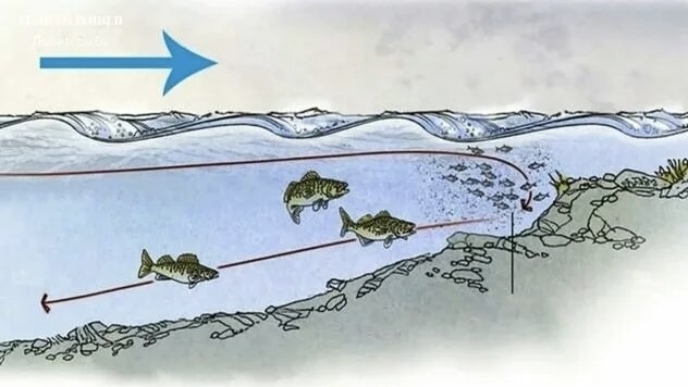 · Конвейер еды: Ветер создает течения, которые сносят корм (насекомых, личинок, малька) в определенные точки. Умный рыболов просто встанет в конце этого «пищевого конвейера».