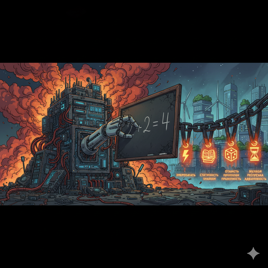Цифровые попугаи современного ИИПредставьте: ИИ, который может сочинить поэму, решить уравнение или даже "нарисовать" картину. Модели вроде GPT-4 или Gemini кажутся волшебством. Но за кулисами — не магия, а статистика. Эти гиганты — всего лишь "попугаи" с триллионами параметров: они не понимают текст, а предсказывают следующее слово по вероятностям, выученным на океане данных. Нет настоящего осознания — только идеальная имитация.Ключевые ограничения текущей парадигмыЭтот подход — как Ferrari на топливе из нефти: мощный, но неустойчивый. Вот главные барьеры: Энергетическая неэффективность: Обучение одной топовой LLM жрет до 1000 МВт·ч — как годовой рацион небольшого городка. ИИ становится экологической бомбой и финансовой дырой.