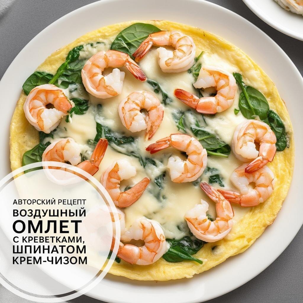 Воздушный омлет с креветками, шпинатом и крем-чизом ☁️🍤.