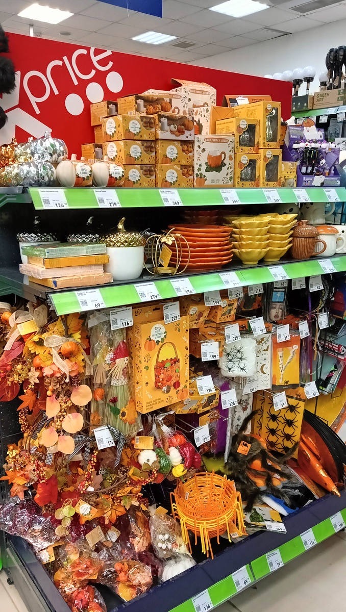 Сегодня посетив магазин Фикс Прайс, хочу поделиться с вами подборкой товаров на осеннюю🍁 тематику, представленную на полке в данном магазине. Вот такая витрина встречала меня при входе в магазин. Многие, кто ходит часто в Фикс Прайс помнит наверное, что в прошлом году осенью в магазин завезли много товаров в виде тыквы🎃. Так в этом году такие товары вернулись, но и появилось немного новинок. Начну с вот таких кружек "Тыква" по 199р., объёмом 500 мл. и чашек с крышкой "Тыква" объёмом 300 мл. за 149р. Для осеннего декора в продаже есть вот такие тыковки в ассортименте по 99р. И шкатулки декоративные в виде тыквы за 174р. 50к. и жёлудя за 279р. Вернулись с прошлого года, вот такая декоративная тарелка "Тыква" размером 31*18 см. за 229р. и маслёнка "Тыква" за 279р. Из новинок на полке были представлены вот такие кружки в виде жёлудя и гриба с крышкой за 229р. Тарелочки в виде тыквы и листьев диаметром 20,5 см. по 229р. и блюдо из трёх листочков размером 19*19*5 см. за 299р. Ещё м