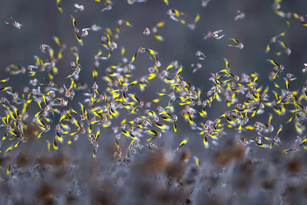 Вчера показала вам несколько фото победителей Bird Photographer of the Year- 2025, сегодня продолжим. Победителем в номинации «Лучшее портфолио» стал Матеуш Песяк из Польши. Из подборки его фото мне больше всего понравилось фото стаи щеглов и фото с двумя конфликтующими щеглами. Как рассказал фотограф, многотысячные стаи собрались на поле с подсолнухами, которые остались неубранными из-за подъема воды.