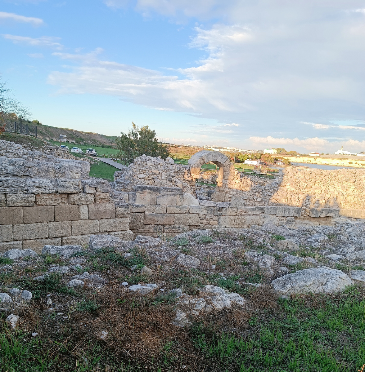 6 октября 2025 года Здравствуйте, друзья! После недолгой прогулки по Севастополю (кто не читал вчерашнюю статью и интересуется, в конце будет ссылка), наш экскурсионный автобус преодолел несколько километров по городу и высадил нас возле музейного комплекса Новый Херсонес и Херсонес Таврический. Вход на территорию комплекса бесплатный, билеты нужно покупать только для посещения некоторых музеев. Мы гуляли там часа три,и не успели осмотреть и половины. Начали мы с его античной части, это раскопки древнего города Херсонес, основанного древними греками ещё в V веке до н. э. За свою многовековую историю, город многое пережил. От расцвета античной цивилизации до вхождения в Византийскую империю. Здесь по преданию принял православное крещение князь Владимир, Креститель земли Русской. Но затем город пришёл в упадок и после присоединения Крыма к Российской империи в 18-м веке, был в основном объектом научных исследований. И в конце 19 века на месте предполагаемого обряда крещения кн