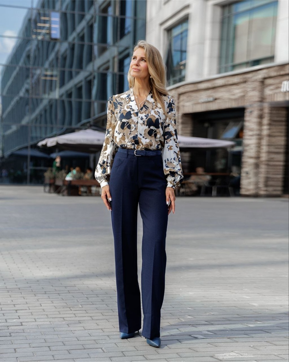 Блуза с принтом и джинсовые брюки от BUSINESS LINE станут идеальным решением для вашего образа. Дизайнерский принт на блузке придаёт образу индивидуальность, сохраняя при этом сдержанность и элегантность, к блузе идеально подойдут брюки из денима или юбка карандаш. Такой дуэт можно комбинировать с жакетом или кардиганом.