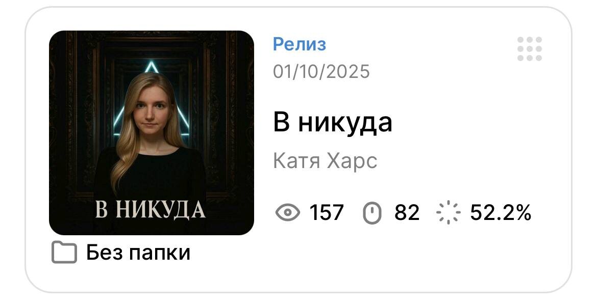 Го добьем 100 кликов в Spotify, Apple Music, VK Музыке и Яндекс Музыке вы можете добавить к себе еще не вышедший трек, послушать еще нельзя, но как только выйдет - он будет у вас😉 Если вы слушаете не в ВК, но у вас он есть, то вы можете сделать мне 2 клика 😉 Вот ссылочка: https://band.link/RRKGu