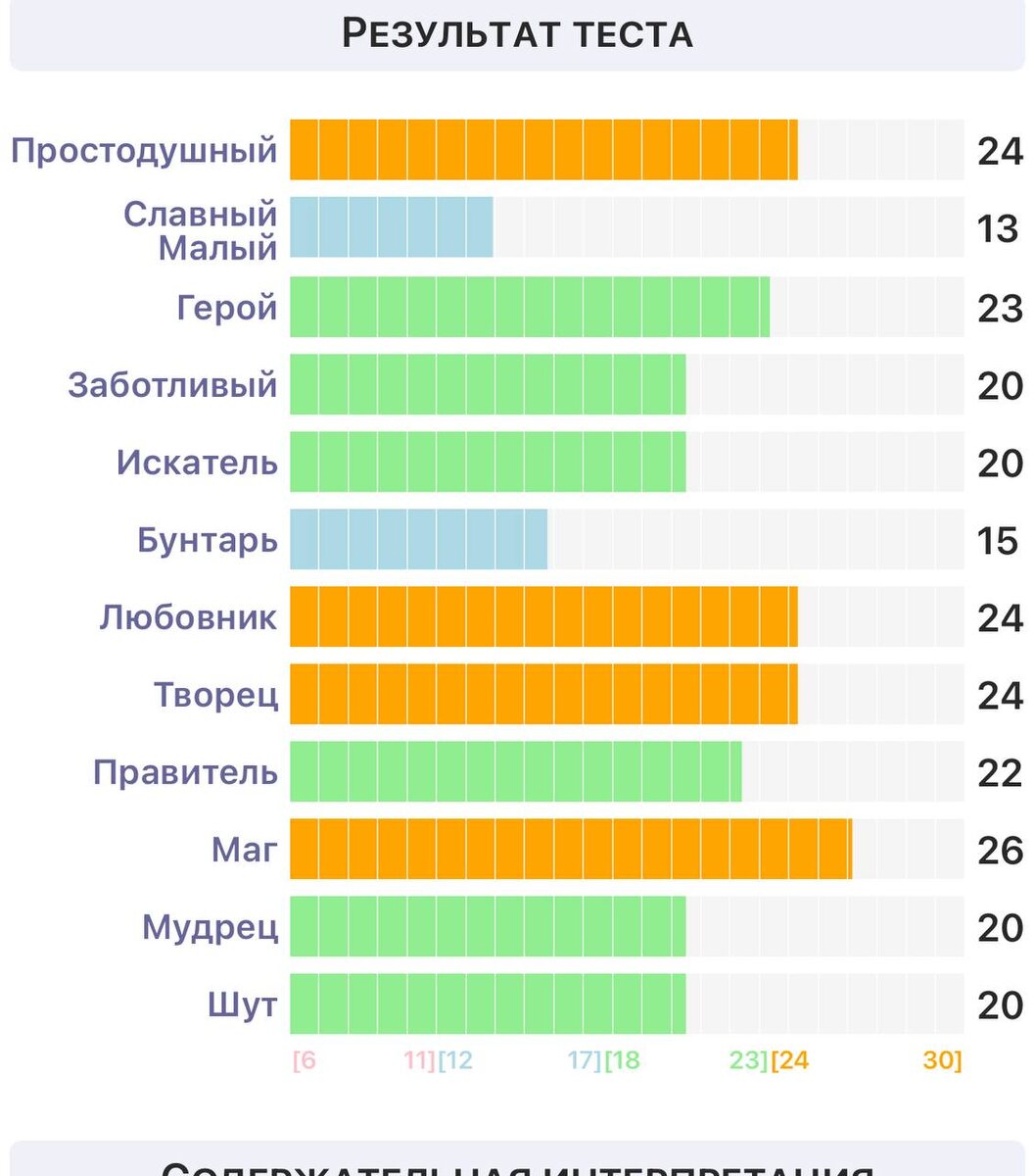 Тест про архетипы показал такие результаты. Совпадения есть с вашей оценкой!?
