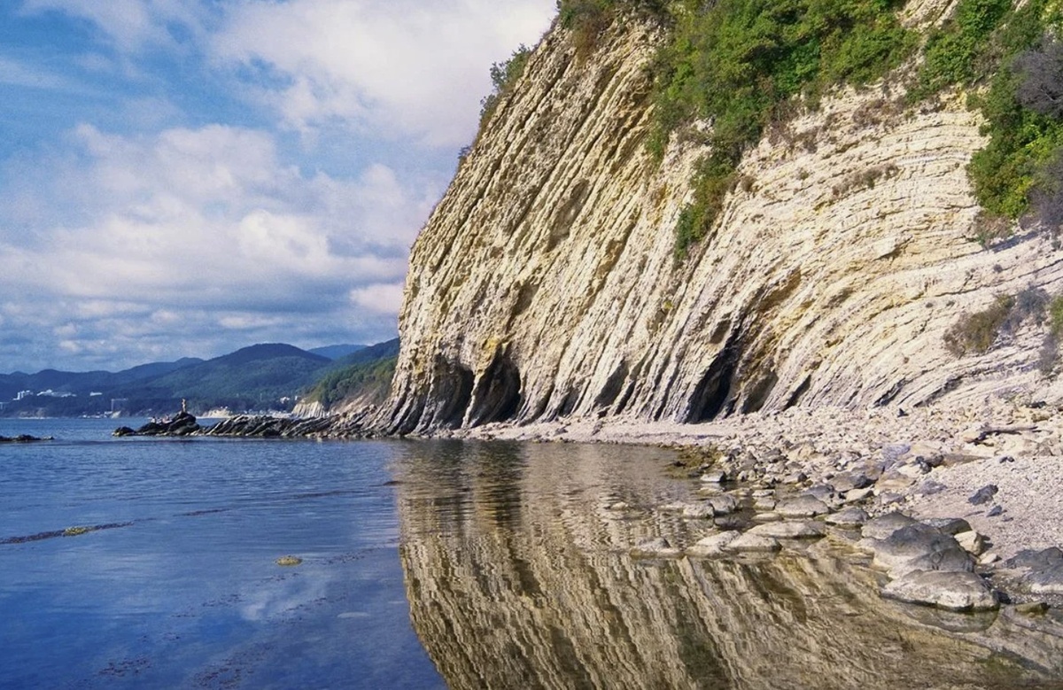 Побережье под Лазаревским украшено длинной линией галечных пляжей и чистыми волнами. Вдоль берега тянутся тропы с видом на море.