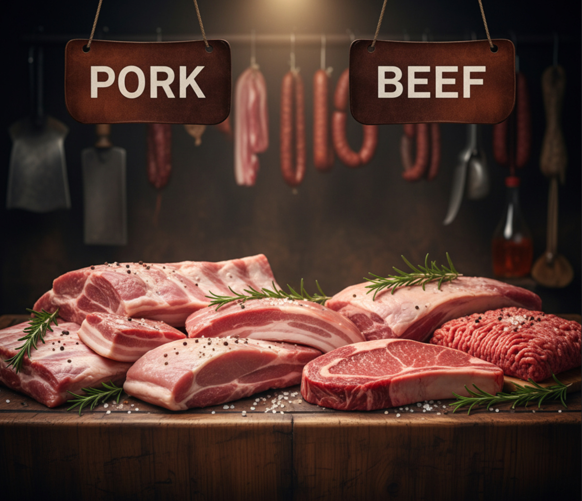 Экономика мяса простыми словами Если заглянуть в любой супермаркет, легко заметить закономерность: свинина почти всегда стоит дешевле говядины. Даже на рынках и у фермеров килограмм свинины стабильно уступает по цене мясу коровы. Многие считают, что дело во вкусе или «престижности» продукта, но всё куда проще — за этим стоят экономика, биология и немного истории. Главная причина — разница в биологии животных. Свинья растёт быстрее и требует меньше затрат на содержание. Чтобы откормить поросёнка до убойного веса (около 100 кг), нужно примерно 6–8 месяцев. Корова же достигает подходящего веса лишь через полтора-два года, а иногда и дольше. Кроме того, свиньи — всеядные животные. Они могут питаться не только зерном, но и пищевыми отходами, овощами, комбикормом. Коровы же едят в основном траву, силос и зерно — то есть продукты, которые тоже нужно выращивать. Если подсчитать затраты, выходит, что на 1 кг свинины нужно примерно вдвое меньше корма, чем на 1 кг говядины. Экономисты аграрного с