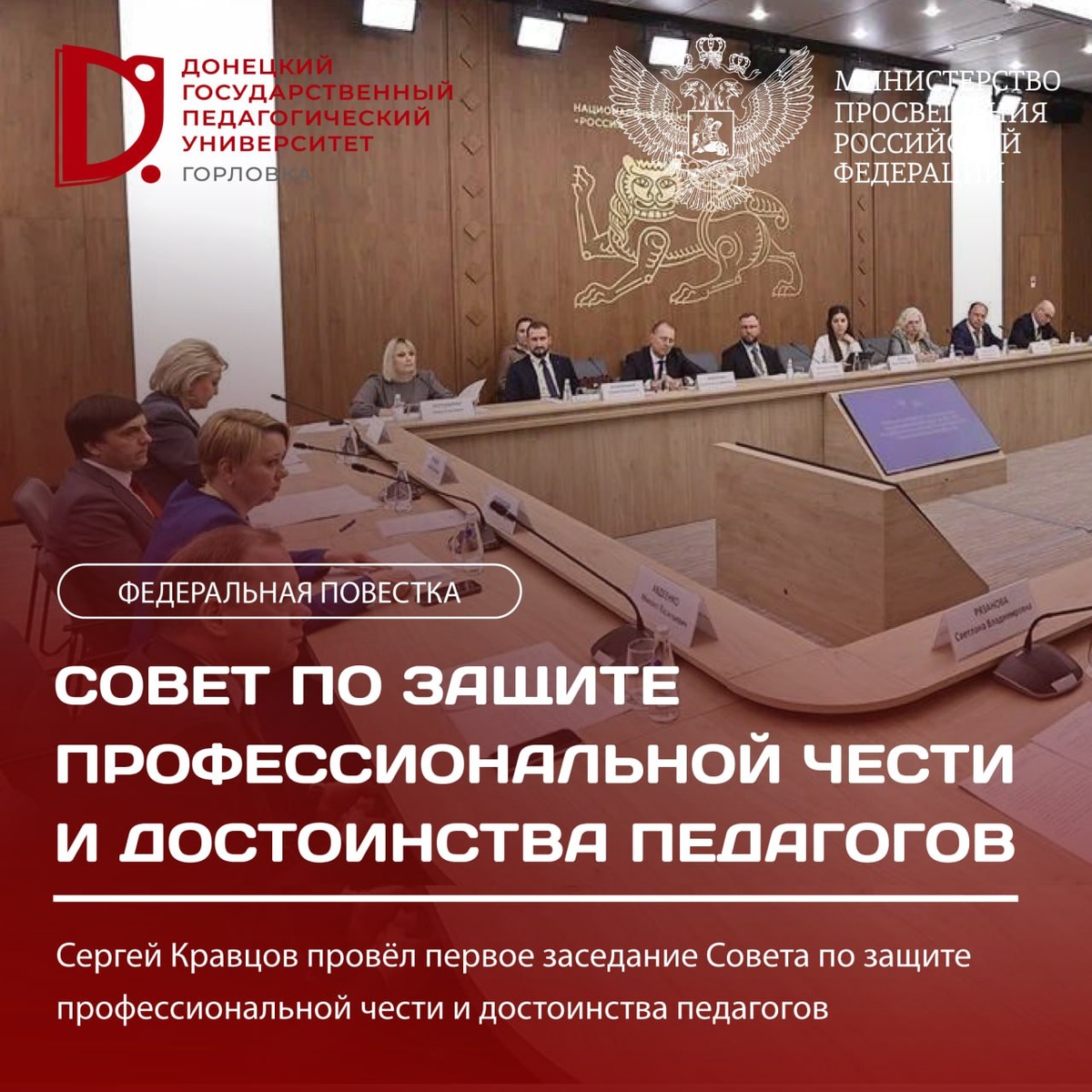 Сергей Кравцов провёл первое заседание Совета по защите профессиональной чести и достоинства педагогов