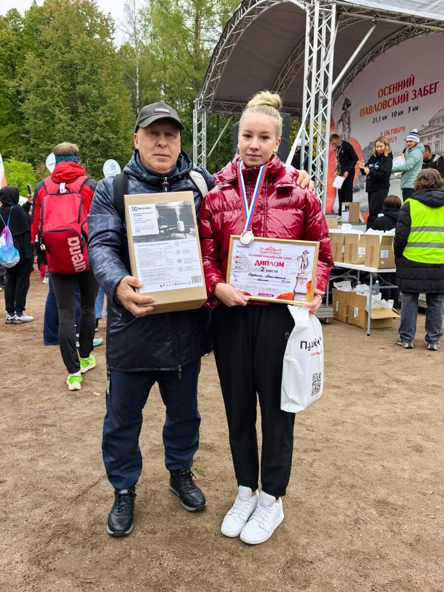 🍁ОСЕННИЙ ПАВЛОВСКИЙ ЗАБЕГ 🏁 🏅Семь медалей выиграли наши спортсмены отделения легкой атлетики сегодня в Осеннем Павловском забеге, уверенно преодолев дистанции в 10 км и 3 км в одном из самых красивых парков нашей страны, Государственном музее-заповеднике Павловск.🔥 ✨С гордостью называем имена наших победителей и призеров: 🥈Софьина Анастасия заняла второе место на дистанции 10 км в абсолюте. 🥇Маргарита Дутчак стала победителем забега на 3 км в абсолюте. 🥇Салтыкова София стала победителем в беге на 3 км среди девушек до 16 лет. 🥇Гупалова Маргарита показала лучшее время на дистанции 3 км среди девушек до 18 лет. 🥈Песоцкая Василисса заняла второе место в беге на 3 км среди девушек до 18 лет. Тренер: Беликов Юрий Леонидович. 🥈Макушкин Леонид занял 2 место в беге на 10 км среди юношей до 18 лет. Тренер: Тюрин Игорь Александрович. 🥈Пшеничникова Мелета показала второй результат в забеге на 3 км среди девушек до 16 лет. Тренер: Павловская Евгения Николаевна. 👏Поздравляем наших