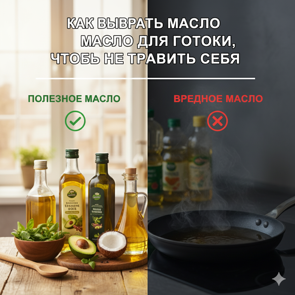 Масло — основа почти любого блюда. Мы жарим на нём, заправляем салаты, добавляем в кашу и выпечку. Но мало кто задумывается, что не каждое масло одинаково безопасно, особенно при нагревании. Некоторые сорта при жарке выделяют токсины, которые вредят печени и сосудам. Разберёмся, какие масла можно использовать спокойно, а какие лучше держать подальше от сковороды. Когда масло нагревается выше определённой температуры, в нём происходят химические реакции: жиры окисляются, образуя трансжиры и альдегиды. Главный показатель безопасности — температура дымления. Это момент, когда масло начинает дымить и неприятно пахнуть. После этого оно превращается из полезного продукта в токсичное вещество. Важно: не путать с нерафинированным (Extra Virgin) — оно полезно только для холодных блюд и салатов. При нагреве оно теряет свойства и начинает дымить. Минус — повышает уровень «плохого» холестерина, поэтому людям с сердечно-сосудистыми проблемами лучше не злоупотреблять. Главное — не перегревать его до