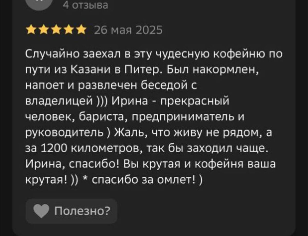 а это просто отзыв из рандомной кофейни где-то на автомагистрали заставляет задуматься о том, как важен глубокий сервис и клиентоориентированность для создания хорошей репутации заведения