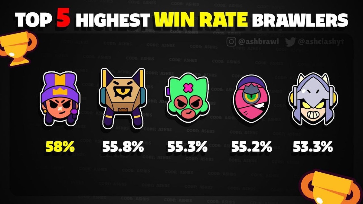 ⚡️Топ бравлеры с самым высоким винрейтом 1. Мина с 58% побед 2. Финкс с 55.8% побед 3. Олли с 55.3% побед 4. Тара с 55.2% побед 5. Драко с 53.3% побед Именно на этих бравлерах чаще всего сейчас побеждают. ✅Новости по Clash Royale - ТЫК ✅Новости по Телеграмм подаркам, NFT - ТЫК Мир Supercell. Подписаться