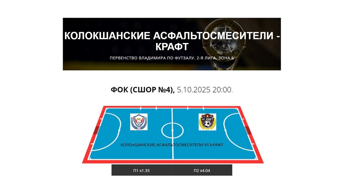 ⚽ Первенство Владимира по футзалу. 2-я лига. Зона Б. 05.10.2025 г. Колокшанские асфальтосмесители - Крафт 1:3 (0:1) 📹Обзор