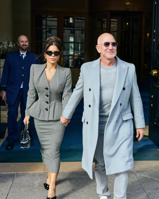 Наташа Арчер подтянула не только Меган: Джефф Безос и Лорен Санчес в серых нарядах на Неделе моды в Париже