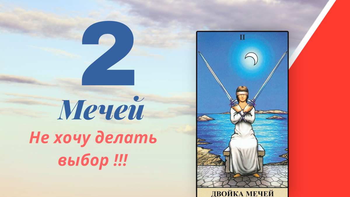 Итак, все двойки в таро это карта выбора, какого, смотрим масть. Так же все двойки в Таро соответствуют Жрице. Исход ситуации, полон тайн и пока еще не известен. Если во всех остальных двойках герой делает выбор, то в мечевой масти герой полностью отказывается что-либо делать. Здесь не желание делать выбор.