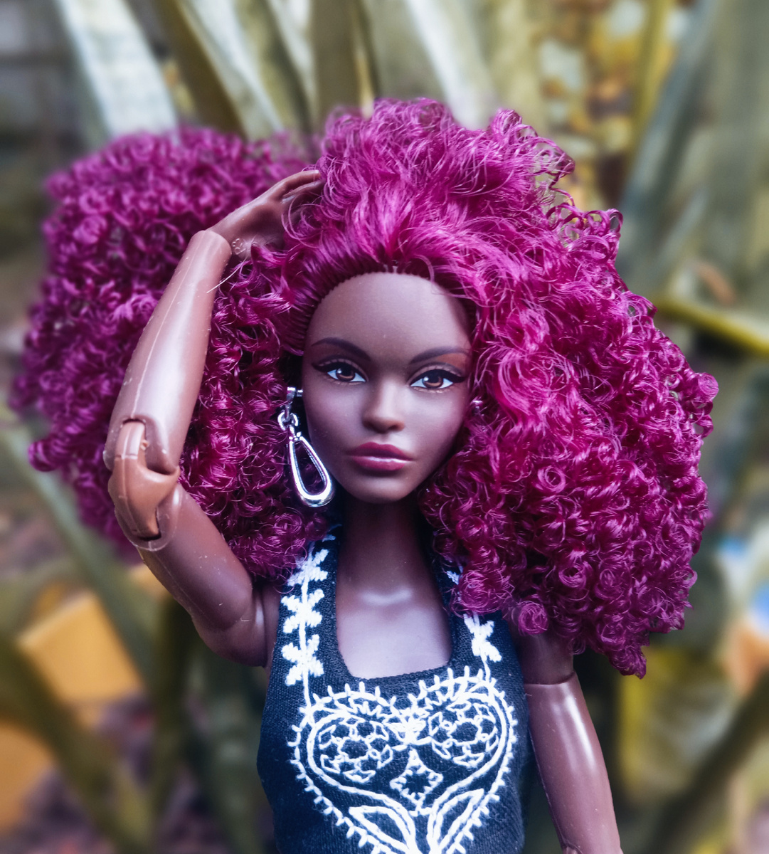 Продолжаю разбирать летние фотографии. В июне ко мне приехала новая кукла из серии Basics - Клодетт. До этого в коллекции у меня проживала всего одна темнокожая красотка - Пазетт БМР. И сейчас я кусаю себе локти, что вовремя не купила пышку Эль, она так подорожала... А в Клодетт я влюбилась сразу. Даже несмотря на ее свекольные волосы (у африканок мне всегда был привлекательнее естественный - черный-цвет). Мне кажется , этот молд отличается особенной выразительностью, гармоничностью и благородством черт. Сейчас я уже полюбила и необычный оттенок волос. Когда она приехала ко мне, сначала я немного расстроилась, ведь один глаз показался слегка больше другого. Но, присмотревшись, я поняла, что этот небольшой прищур - изюминка моей Кло, она - девушка-загадка, в душу свою никого не пускает. Смотрит на тебя, и кто его знает - что думает... Непростой характер, но цену себе знает и себя любит. Итак, прошу любить и жаловать: прекрасная Клодетт! В кукольном сообществе одно время обсуждалось - к