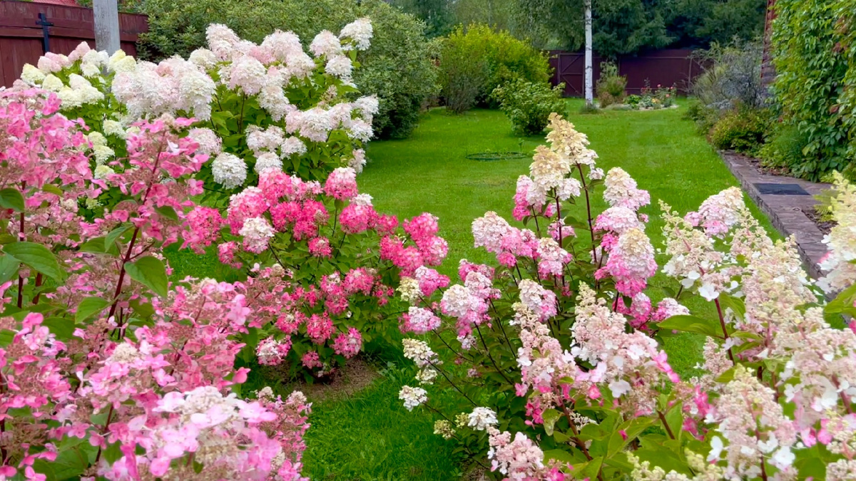 Гортензии все красивые. Есть подросшие черенки семи сортов: "Ванила Фрайз", "Кендллайт", "Лаймлайт", "Фантом", "Менджикал Старлайт", "Фрайз Мельба", гортензии с белыми мотыльковыми соцветиями неизвестного сорта и несколько горшков "Вимс Ред", которые мы будем в следующем году высаживать на западную рабатку.