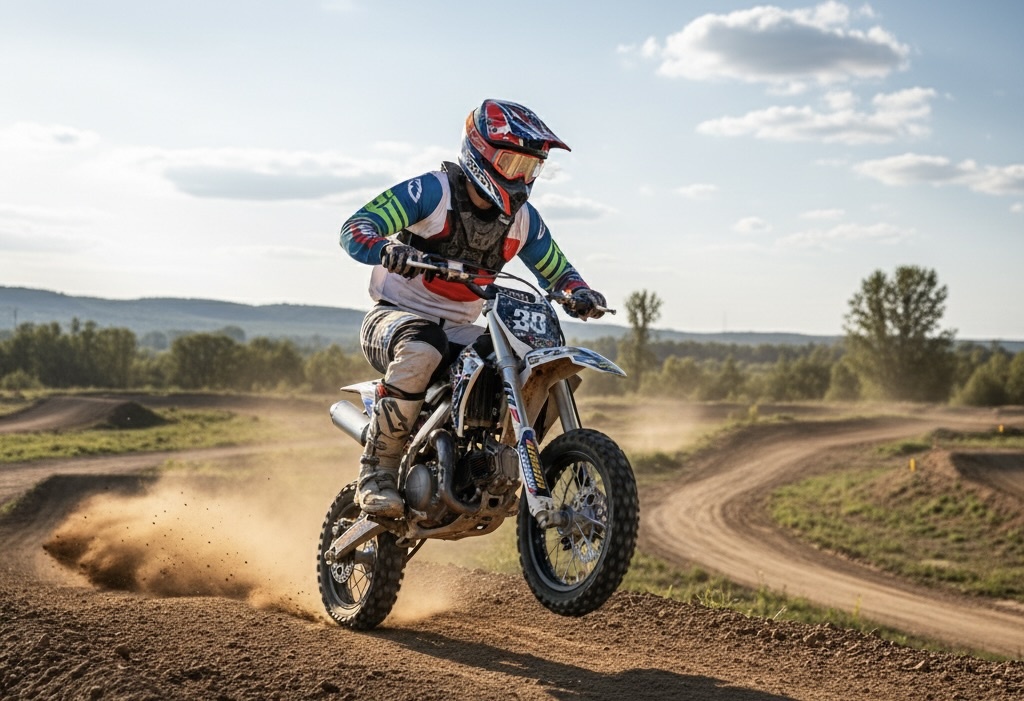 - Шлем: Обязательно кроссовый шлем, желательно с сертификацией ECE/DOT.