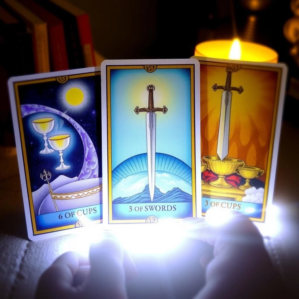 - Его Чувства к Вам: Вот где проявляется сложность. Наличие Тройки Мечей после Шестерки Кубков говорит о том, что его чувства к вам сопряжены с сильной болью. Это не просто грусть, это глубокое переживание утраты, разочарования или даже предательства (возможно, с обеих сторон или только с его).