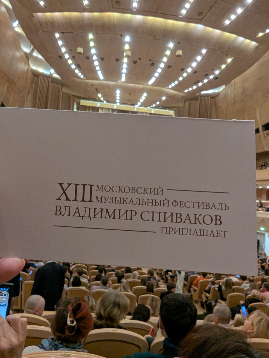 Сегодня ходила в ММДМ - Московский международный Дом музыки. Открытие фестиваля. Это приглашение на фото не моё, у зрителей из соседнего ряда попросила сфотографировать. Мы с сестрой просто купили билеты, потому что хотели послушать Грига. Билеты покупали очень заранее, ещё летом