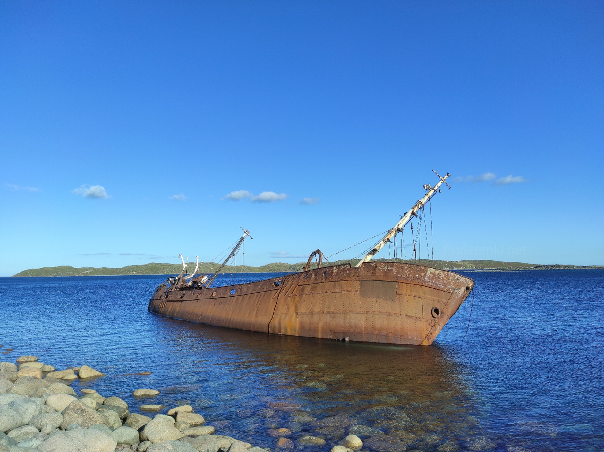 К сожалению, мы несколько опоздали. Время и стихия взяли своё, судно сильно завалилось набок, надстройка рухнула, корпус местами проржавел насквозь. Оставалось сделать привал с красивым видом и выдвигаться обратно.