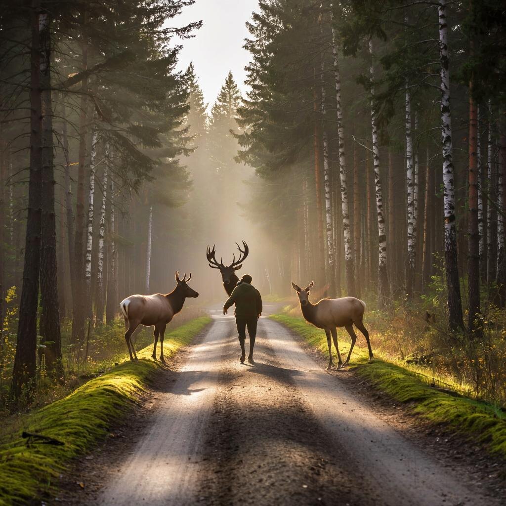 Лось-великан и его красавица-жена лосиха Представьте себе раннее утро, когда солнце только-только начинает выглядывать из-за горизонта. Вы идёте по узкой лесной тропинке, наслаждаясь свежестью воздуха и пением птиц. И вдруг... ☝️ Вдруг прямо перед вами возникает огромное животное с величественными рогами и глубокими выразительными глазами 🐌✨ Это он - лесное чудо природы, царь всех зверей нашего края – настоящий взрослый лось! Сердце начинает бешено колотиться от восторга и волнения 😱 Как же это круто и необычно встретить такого гиганта в дикой природе! Ведь не каждый день удаётся увидеть столь массивного лесного жителя вблизи! Но на этом сюрпризы дня не закончились 😲 Рядом с ним появилась стройная грациозная лосиха – настоящая королева леса! Она шла спокойно рядом со своим спутником, доверчиво поглядывая на вас своими красивыми глазками 💓 Смотри тут Эти невероятные моменты встречи навсегда останутся в памяти как нечто особенное и волшебное. 🦌✨ Пусть ваша жизнь будет полна так