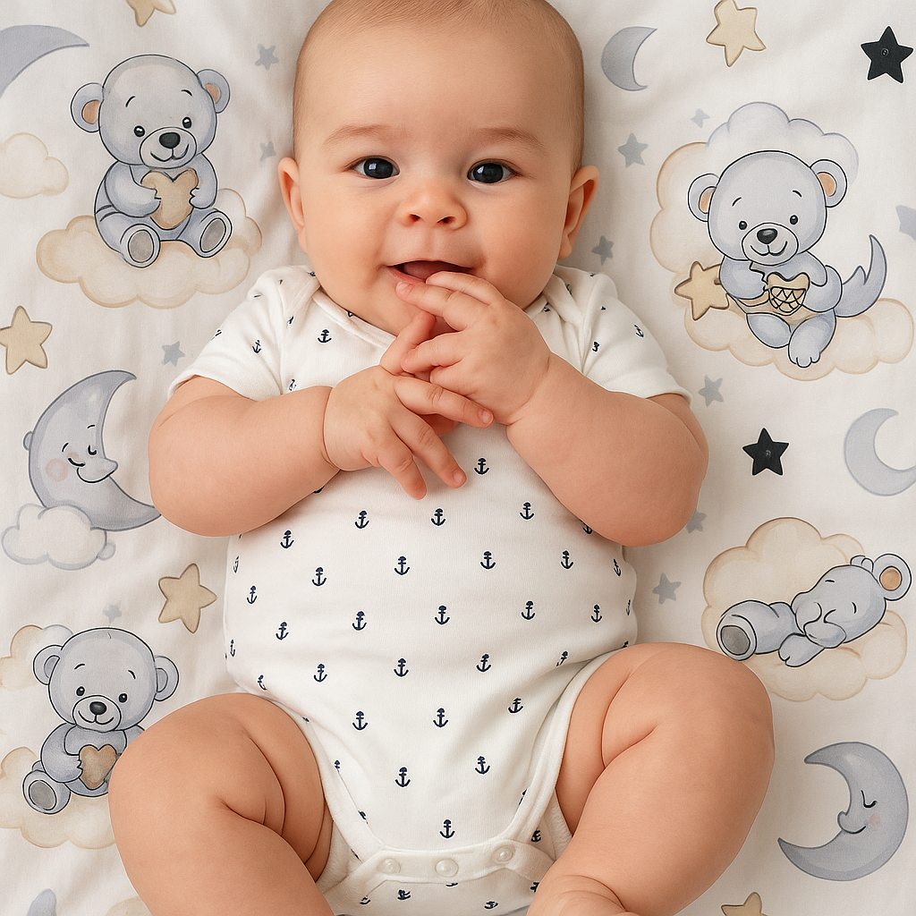 - Эмоции и общение: Узнает близких, настороженно реагирует на незнакомцев. Лепечет, повторяя слоги «ба-ба», «ма-ма» (пока без осознанного смысла).