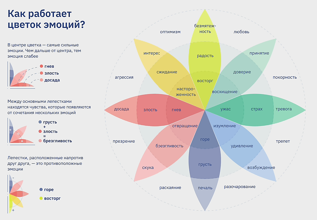 Как из них "собираются" сложные чувства? Примеры, как смешиваются эти "эмоциональные краски":