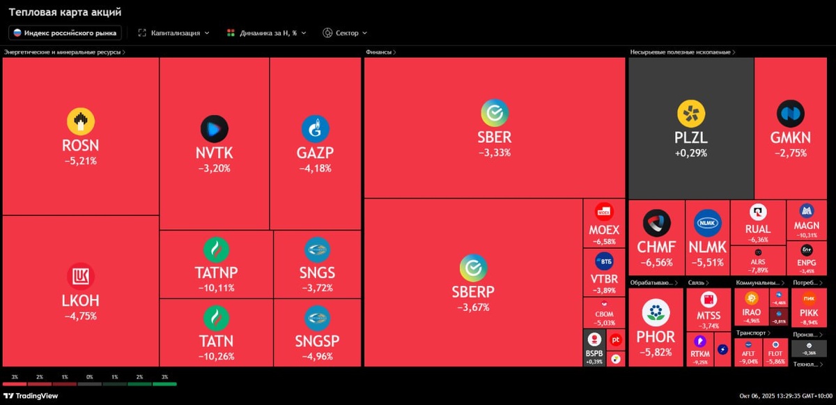 Добрый день 👸Дамы и 🤴Господа!🤗 В преддверии новой торговой недели сделаем обзор по рынкам. Посмотрим какие изменения произошли на прошлой неделе и что нас может ожидать впереди. Начнем как всегда с индекса МосБиржи $MXU6 #IMOEX на прошлой неделе упал на 4,5% Чем запомнилась прошлая неделя? Да только ускорением инфляции. Да и новыми санкциями. В остальном мусолят одно и то же. Что имеем в итоге. Многие бумаги уже уперлись в свои глобальные поддержки — и по настроению видно, что на рынке сейчас правит страх. Комментарии просто пропитаны тревогой. Но, как показывает практика, именно в такие моменты и рождаются лучшие возможности. Да, всё снова упирается в геополитику. Сколько это продлится — не скажет никто. Зато тот, кто сумеет поймать разворот, может сделать очень хорошие проценты. Я пока наблюдаю со стороны. Не спешу входить. Если начну покупать — обязательно сообщу. 💬 По графику. Летим вниз как "угорелые". 🏎 Впереди Глобальный минимум 2598-2600. Спроса нет никакого. Для раз