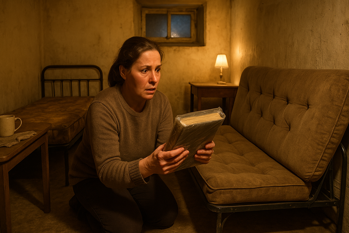 Нина вытерла диван тряпкой, попробовала разложить — легко, без скрипа. Посмотрела на старую кровать и решила убрать её в угол. Когда раскладывала диван полностью, заметила в бельевом ящике сверток. Осторожно достала. Это была толстая тетрадь в полиэтиленовом пакете.
