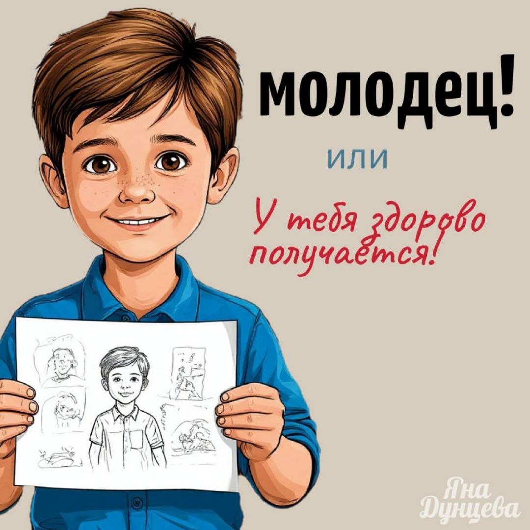 Хвалить нельзя ругать. Где поставить запятую, или почему слово «молодец» разрушает мотивацию вашего ребенка? Сейчас у многих так... Ребенок убрал одну игрушку - молодец! Показал на кошку в книжке - умница! Съел ложку супа - опять молодец! За день набирается сотня этих «молодцов», произнесенных часто автоматически, иногда даже без отрыва от смартфона. А теперь честно🧐что на самом деле стоит за этим «молодец»? 💔 Да, я видел твой рисунок, но мне некогда. 💔 Я не хочу тебя огорчать, хотя ерунда полная. 💔 Просто отстань от меня поскорее. Дети — это прекрасные эмпаты. Они считывают разницу между искренним восхищением, когда мы бросаем все дела, смотрим им в глаза, и дежурной фразой, брошенной вполуха. И эта разница имеет огромные последствия. Что не так с похвалой-автоматом? Нам кажется, что мы формируем у ребенка положительную самооценку. На деле мы делаем нечто иное: 1️⃣Мы убиваем внутреннюю мотивацию. Ребенок рождается с огромным интересом к миру. Ему не нужно чье-то мнение, чт