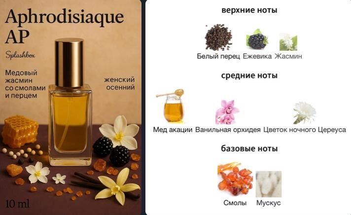 💫💫💫💫💫💫💫💫💫💫 🩷🩷🩷🩷🩷🩷 🩷🩷🩷 💫💫💫💫💫💫💫💫💫💫 Всем привет! 🩷 Мой аромат дня - новинка 🌿 Aphrodisiaque AP - медовый жасмин со смолами и перцем 😁Арт. 554744620 Аромат-референс: Aphrodisiaque Agent Provocateur Это аромат, который соблазняет, манит и оставляет незабываемый след. Яркий и чувственный, этот парфюм погружает в атмосферу утончённой страсти и загадочной элегантности. Он раскрывается многослойно, с каждым аккордом показывая новые грани своей сексуальной и соблазнительной композиции. Звучание: Верхние ноты: Белый перец придаёт аромату острый, немного пряный старт, который обвивает лёгкими нитями свежести. В то время как ежевика дарит сладкую, сочную ягодную ноту, а жасмин привносит утонченную цветочную свежесть и изысканность. В сердце аромата звучат мед акации и ванильная орхидея, создавая тёплую, сладкую и в то же время воздушную композицию. Эти ноты идеально сбалансированы, придавая аромату глубину и соблазнительную мягкость. Цветок ночного цереуса