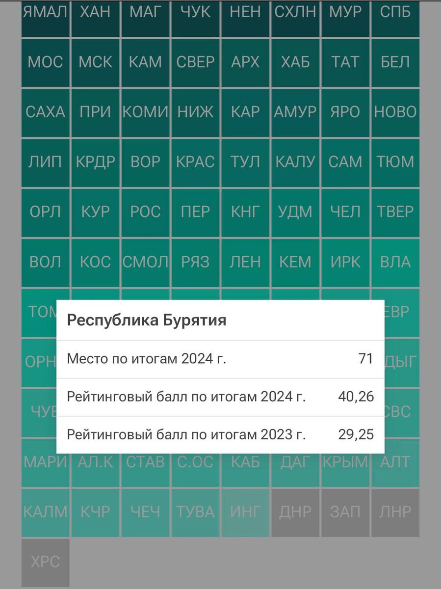 Бурятия оказалась на 71 месте среди регионов РФ в рейтинге по материальному благополучию населения по итогам 2024-года По подсчетам РИА Новости, наш рейтинговый балл составляет 40,26 Соседняя Иркутская область занимает в этом рейтинге 47 строчку у них 58,09 балла, а Забайкальский край 61 место с показателями 50,50 балла. 📲 Подписывайся на нас в МАХ