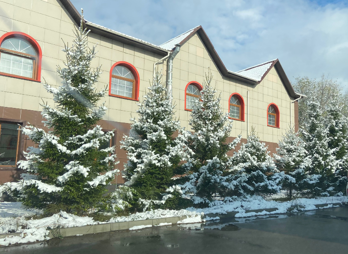 Сегодня у нас выпал первый снег. Ещё ночью был то снег, то дождь, а утром снег уже повалили огромными снежными хлопья.