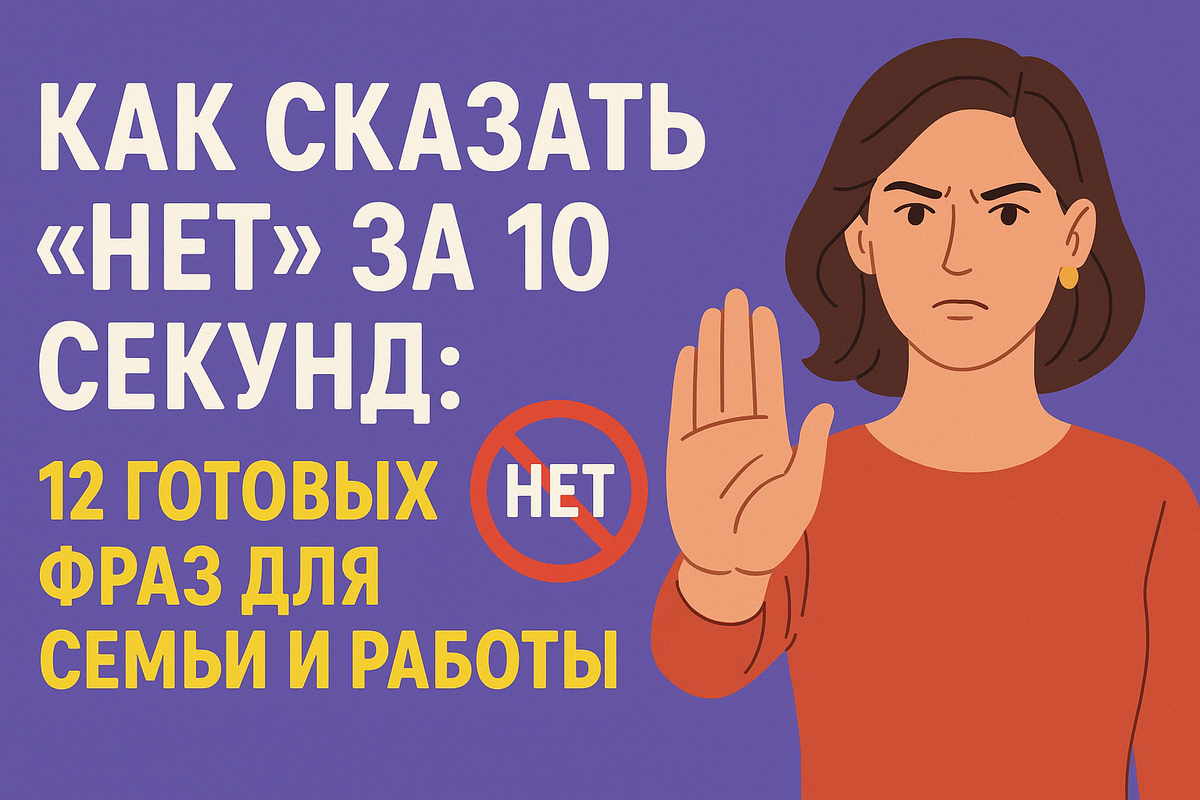 Боль простая: мы тянем чужие просьбы на себе и теряем фокус. У меня так было годами - соглашался из вежливости и расплачивался временем. Я заметил триггеры: внезапные звонки, срочно надо, чуть-чуть помоги. Эти фразы закрывают нам глаза на планы. В этой статье я покажу быстрый способ отказать экологично и не портить отношения. Я веду календарь и знаю цену времени. Моя задача - беречь ресурс и качество. Чтобы говорить "нет" спокойно, я опираюсь на три опоры: граница - альтернатива - срок. Ни оправданий, ни длинных рассказов. Работает дома и на работе. Ниже мой личный набор коротких скриптов. Берите и повторяйте вслух, это те самые слова, которые побудят испытать эмоцию и переключить внимание на смысл. Ситуация 1 - семья просит прямо сейчас