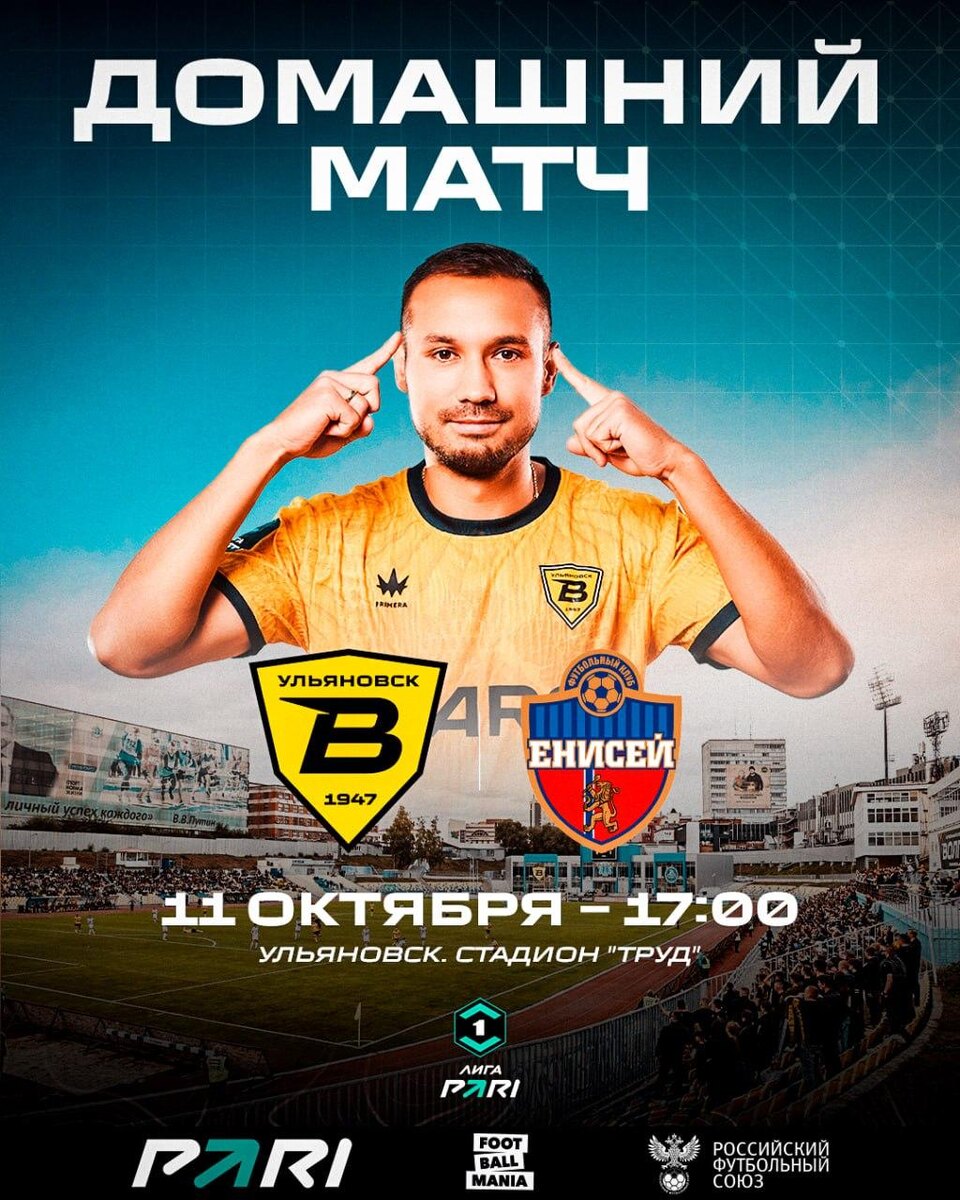 В субботу, 11 октября, в 17:00 ульяновская "Волга" сыграет домашний матч с "Енисеем