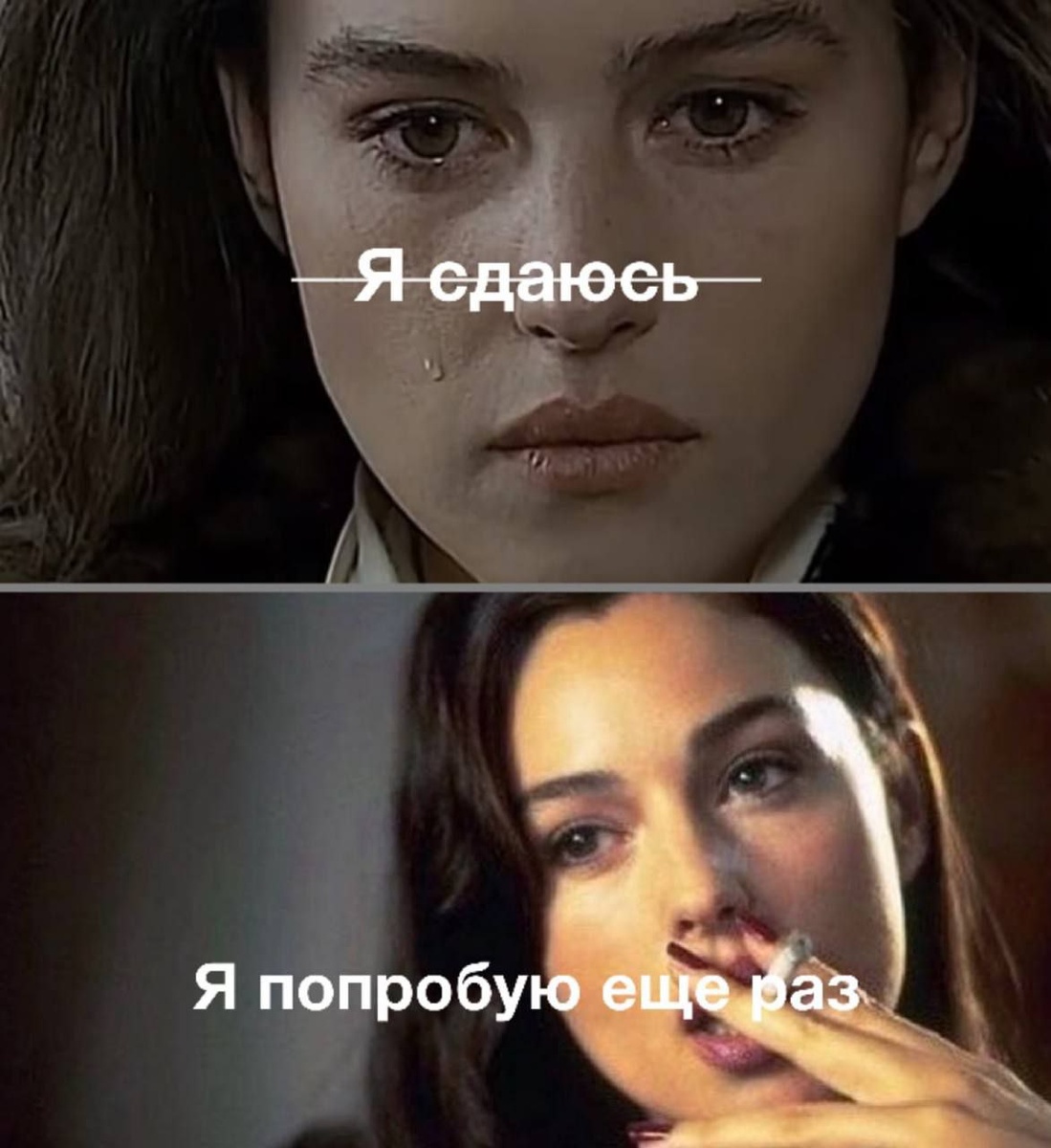 Серьёзный мотивационный мем для утра понедельника. Что ж, попробуем. Доброе утро!