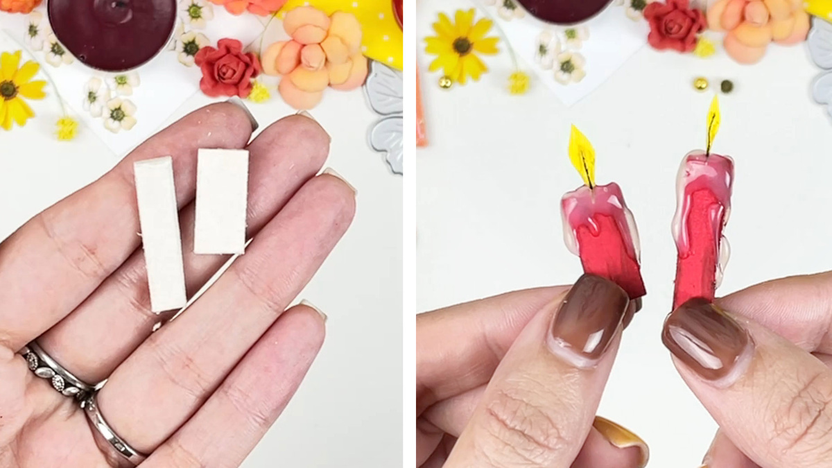 Остатки картона превратила в маленькие свечи для оформления осенних и новогодних открыток