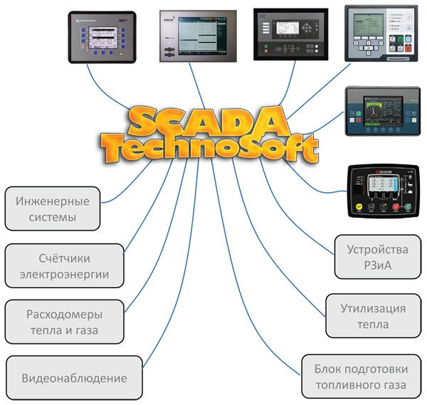 Рис. 1. TechnoSoft позволяет легко объединить в одном проекте панели управления, устройства защиты, контроллеры, узлы учета и другое оборудование разных производителей