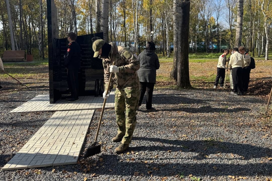 Учащиеся кадетских классов школы № 24 г. Комсомольска-на-Амуре совместно с сотрудниками Росгвардии провели уборку территории возле памятника, посвящённого бойцам ОМОН «Ураган», погибшим при исполнении служебного долга.