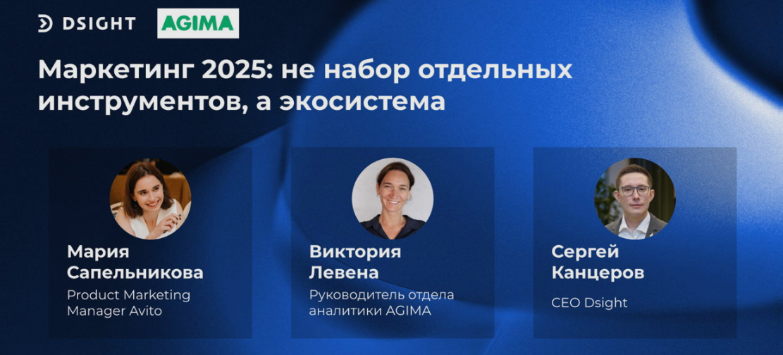 16 октября в 16:00 (МСК) пройдет онлайн-конференция «Маркетинг 2025: не набор отдельных инструментов, а экосистема», которую совместно организовали AGIMA и Dsight. Участие бесплатное, необходима регистрация: https://clck.ru/3PYZFV . Маркетинг будущего – это не разрозненные инструменты и каналы, а единая экосистема, где каждый элемент должен работать согласованно. Эксперты из AGIMA, Dsight и Авито расскажут, как бизнесу выстроить целостный подход к привлечению и удержанию внимания клиента. Ключевые темы конференции ✔ Кто он, пользователь 2025? Поговорим о новых покупательских привычках, трендах и балансе между персонализацией и релевантностью. ✔ A/B-тестирование и маркетинг: как измерять данные для принятия обоснованных решений в маркетинге? Разберем на примере реальных кейсов. ✔ Как бизнесу жить со всем этим: превращение данных в действия. Учимся синхронизировать команду, строить план-факт анализ, тестировать и постоянно оптимизировать стратегию. Спикеры Для кого Конференция будет поле