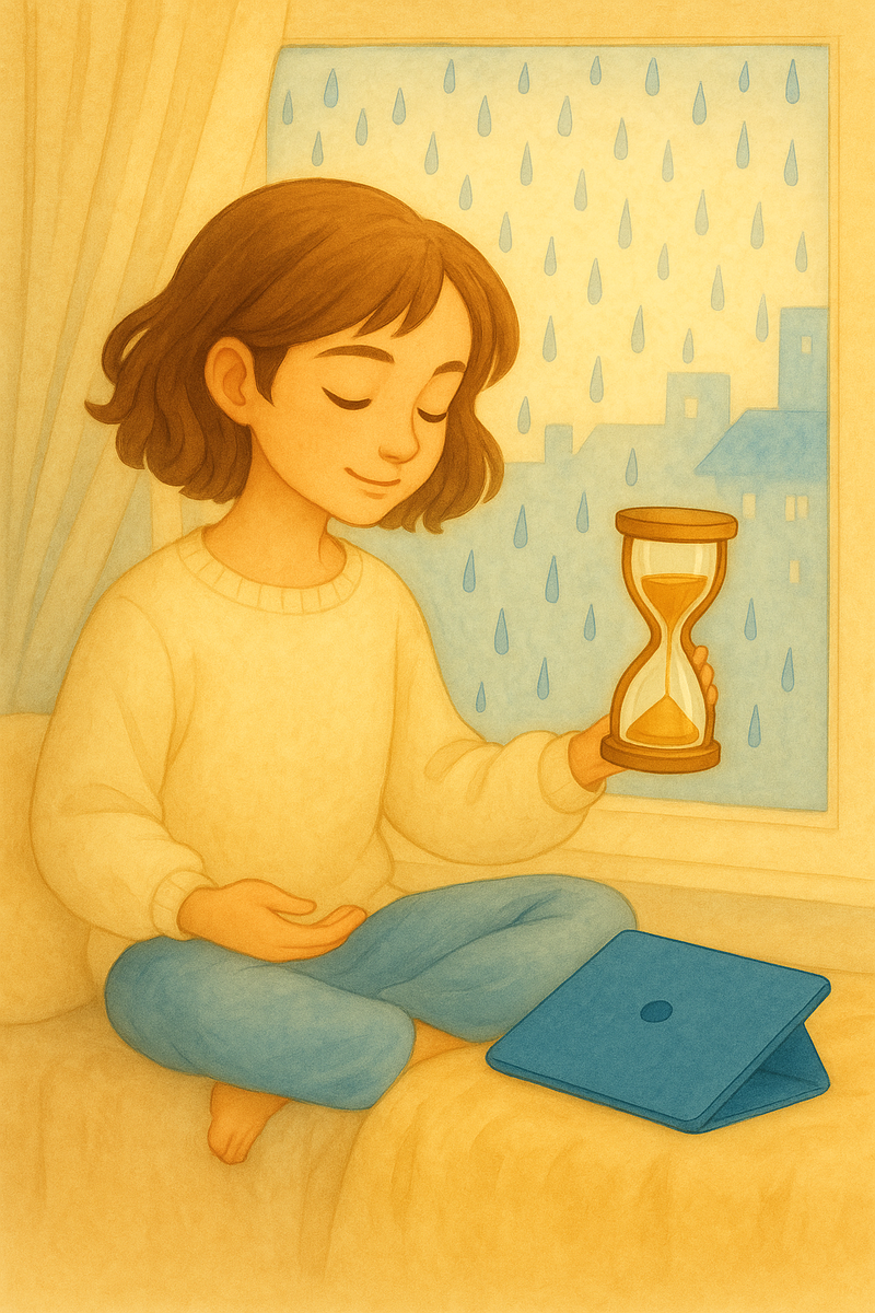 Экран — как музыкальная шкатулка: прекрасная, когда играет, но у каждой мелодии есть мягкий финал, чтобы уши и сердце отдыхали. Песочные часы — фонарик времени, делающий границы видимыми, а «якорь в ладони» — небольшой предмет, который удерживает внимание здесь-и-сейчас, помогая эмоциям притормозить без напоминаний про «дыши глубже». Когда руки заняты простым, повторяющимся движением, голова находит тихую дорожку к следующему делу. Перед сном Ника задумалась: