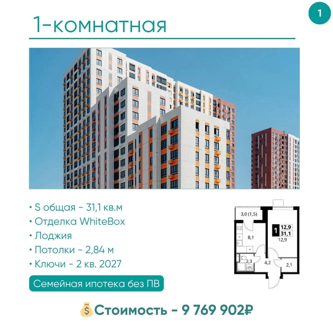 Невероятно! 0 рублей — первый взнос по семейной ипотеке Семейная ипотека без первого взноса в Новой Москве и Московской области — это не реклама из мечты, а реальное решение, которым вы можете воспользоваться уже сегодня. Мы помогаем подобрать квартиру под любые обстоятельства — в том числе, если у вас нет первоначального взноса. 1️⃣1-к.кв 31,1 кв.м: Цена: 9 769 902₽ ПВ 20,1% вносит застройщик Ежемесячный платеж: 46 802₽/мес Ставка: 6% Срок: 30 лет 2️⃣2Е-к.кв 47 кв.м: Цена: 13 981 794₽ ПВ 20,1% вносит застройщик Ежемесячный платеж: 66 979₽/мес Ставка: 6% Срок: 30 лет 3️⃣2Е-к.кв 42,11 кв.м: Цена: 7 781 928₽ Ставка: 5,99 % Ежемесячный платеж: 54 064₽/мес Срок: 30 лет 4️⃣1-к.кв 35 кв.м: Цена: 12 132 515₽ ПВ 20% (вносит застройщик): 2 414 249₽ Ежемесячный платеж: 57 539₽/мес Срок: 30 лет Ставка: 6% Бронь: 121 325₽ Комиссия банка: 84 498₽ 5️⃣1-к.кв 47,47 кв.м: Цена: 14 575 730₽ Ставка: 6% Ежемесячный платеж: 69 823₽/мес Мы подберем квартиру под ваш бюджет, рассчитаем ипотеку и прове