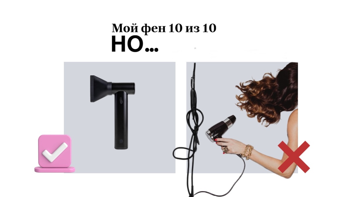 Каждый мастер хотя бы раз говорил: «Мой фен — просто 10 из 10». Он быстрый, мощный, привычный. Но со временем начинаешь замечать нюансы, которые мешают в работе. Именно из этих «но» и рождаются новые решения. Если вы работали за креслом, то знаете, как раздражает этот «хвост». Шнур цепляется, путается, тянется через клиента, иногда приходится буквально крутиться вокруг розетки. AirOne решает это просто: он беспроводной. Можно свободно перемещаться, работать с любой стороны, без ограничений. Свобода движений и работа становится легче. Даже на минимальном режиме поток воздуха у большинства фенов слишком горячий. Волосы пересушиваются, кожа головы реагирует, клиенту бывает некомфортно. AirOne работает на естественном потоке воздуха, без нагрева. Он мягко продувает пряди, сохраняя комфорт. Это особенно ценно при длительных процедурах окрашивания, когда важна точность и безопасность волос. Обычный фен создан для сушки и укладки. Но в колористике задачи другие. При техниках вроде AirTouch и