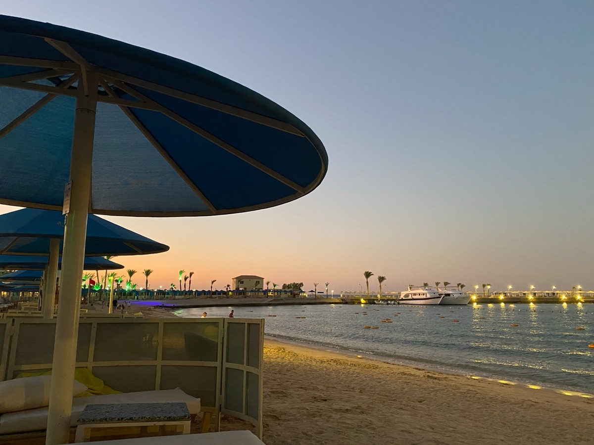 Кстати, это первый отель в Египте, в котором нам удавалось побывать на пляже вечером – обычно все пляжи после 18:00 закрывают. Это большой плюс – можно полежать на лежаке с коктейлем и посмотреть на ночное море, сходить на пирс и посмотреть на рыбок.