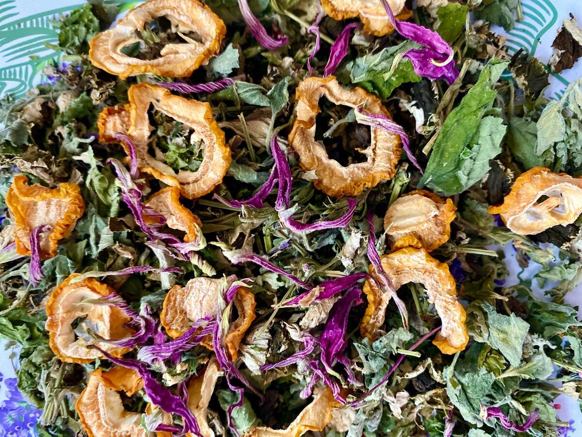 Сегодня пришла идея собрать новый чай с новым вкусом😊, настроение творить… Закройте глаза и представьте… Легкий летний ветерок доносит до вас сладковатый, чуть терпкий аромат лесной малины, переплетающийся с прохладной свежестью мяты и травянистыми нотками иссопа. В его основе-ферментированные листья малины, которые дарят глубокий, насыщенный вкус с легкой кислинкой и медовым лесным послевкусием. Иссоп добавляет чаю травянистый вкус и легкую горчинку, идеально балансирующую сладость малины. Эхинацея наделяет чай легким терпким вкусом, а ещё полезна для здоровья. Мята дарит прохладу и свежесть. Ее аромат успокаивает и расслабляет, помогая снять напряжение после насыщенного дня. И, наконец, секретный ингредиент-айва! Она привносит в чай легкую фруктовую сладость и нежный цветочный аромат. Этот чай ритуал заботы о себе: согреет вас холодным вечером, подарит бодрость утром и поможет расслабиться после тяжелого дня.