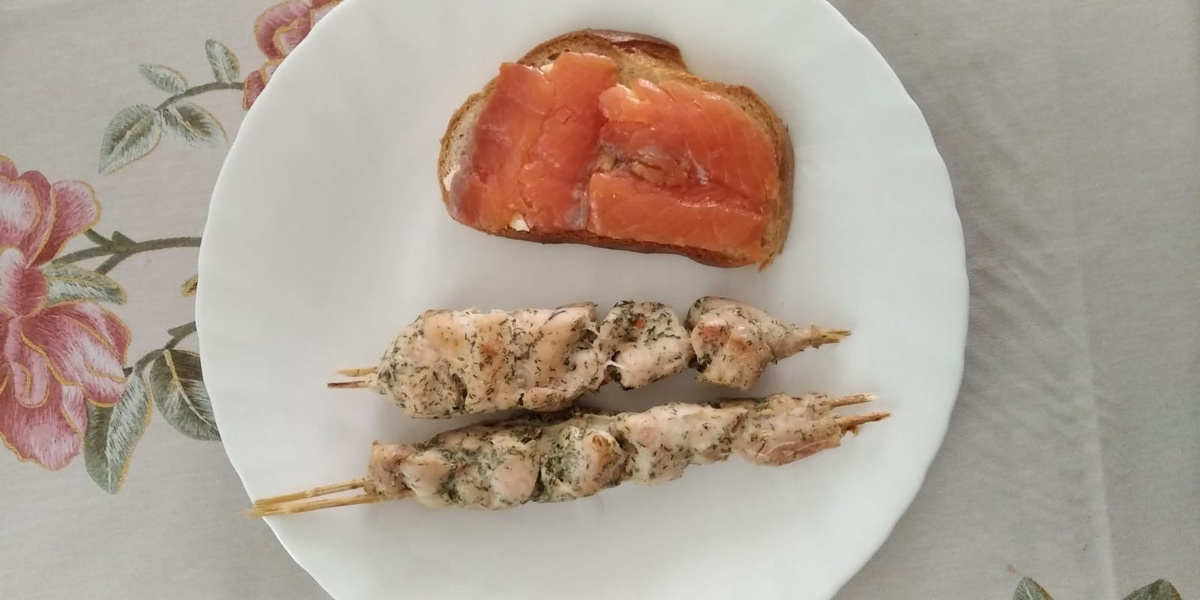 Приветики мои дорогие, как у вас дела? Я сегодня словно птичка воробей с самого утра чирикаю и делами занимаюсь. Утром проснулась, перышки распушила и пошла на кухню любимую, завтрак готовить. Вот я заметила, что много времени провожу на кухне, за плитой. Если бы у меня была своя квартира, то я наверное на кухне очень уютно все сделала. Чтобы там было максимально комфортно проводить время. Завтрак у меня сегодня диетический, захотелось себя побаловать. Это я вчера такие шашлыки готовила, без разных добавок, только самое полезное там. А рыбку мне Лариска дала, точнее с собой принесла на работу. У неё рядом с домом открыли рыбную лавку, так она теперь туда постоянно заходит, и что-нибудь да берет. Вот я ее попросила мне 140 грамм на пробу рыбы взять. И знаете, очень даже вкусная, только по цене дороже чем просто в пятерочки вышла. Вот я заметила, чем лучше и ярче твой день начнётся, тем он активнее и пройдёт. Поэтому всем продуктивного дня, дорогие мои. Ну а я сегодня на весы встал