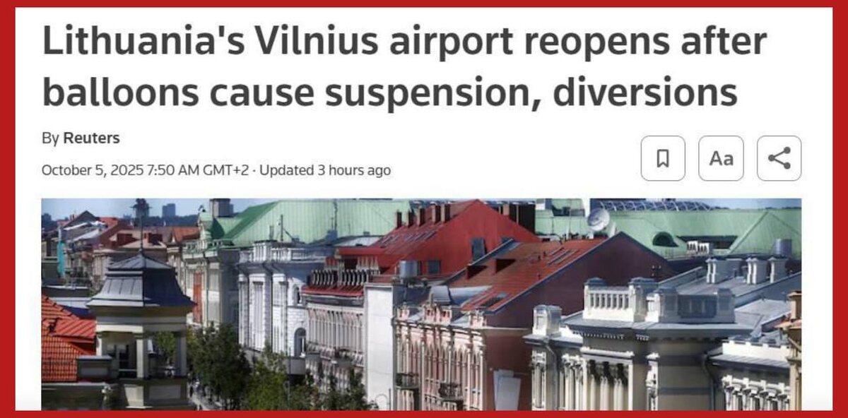 Воздушные шары остановили работу аэропорта Вильнюса на 13 часов, - Reuters. Неизвестные шары двигались в направлении аэропорта, что и вызвало остановку рейсов. Работа аэропорта восстановлена. Представляете, как теперь в Литве, а за ней и во всей Европе, закрутят гайки? Конечно же в интересах безопасности Подпишись на Телеграм Александр Семченко