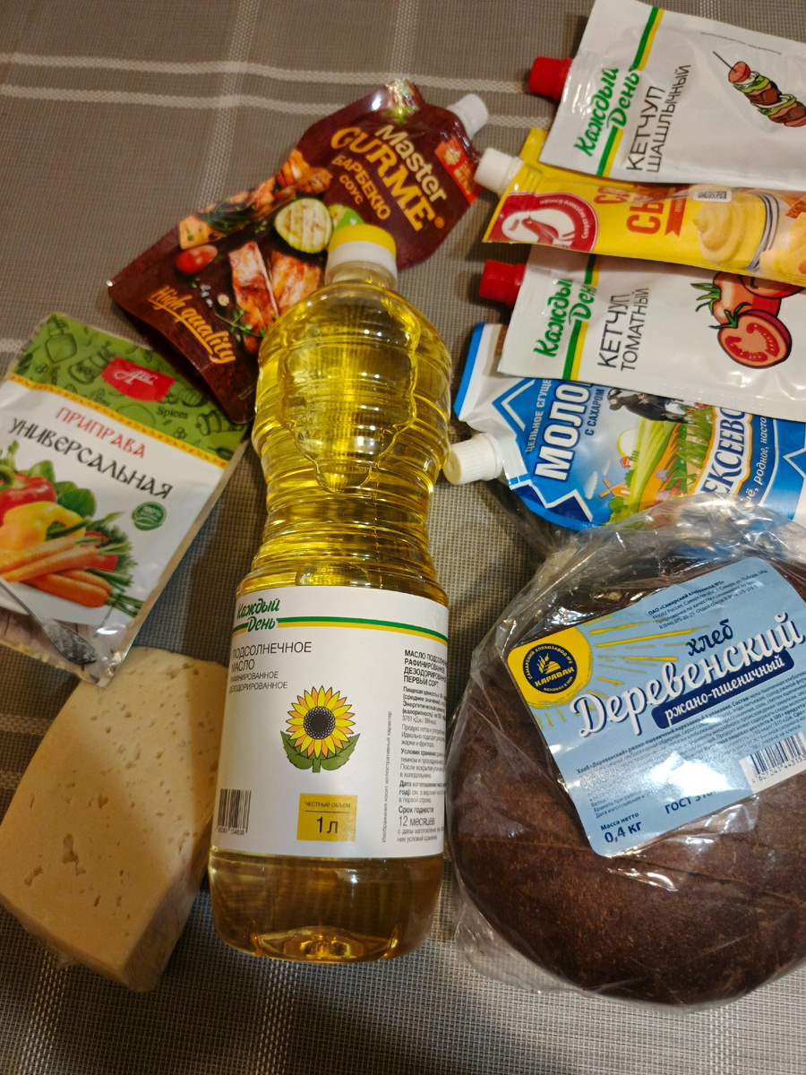 Здравствуйте! Конечно, молоком и хлебом мы себя не ограничили. Начну по порядку. Запланировали с мужем поход в Kuchenland Home, чтобы там реализовать подарочный сертификат. Хотела заказать доставку на сайте, чтобы потом только забрать из магазина, но муж захотел посмотреть глазами и пощупать руками. Раз уж едем, решили зайти в Ашан. Чисто за базовыми продуктами: хлеб, молок, сахар, масло. Их мы тоже купили, но еще немного разгулялись, так что покупка чуть больше. Что касается выгоды, то особых бонусов за это не ждала, но и делать масштабную закупку не планировала. В любом случае, на карту Ашан вернулись бонусы, которые в дальнейшем можно будет потратить. Итак, показываю, что купили Кетчупы берем такие давно, в цене они почти не изменяются. Мы не так часто и много едим этот продукт, так что таких пачек хватает относительно надолго. С соусами тоже не прогадали, в отличие от Цезаря, сырный соус Ашан очень неплох, соус барбекю тоже оказался вкусным. Коты ведут нас уверенно к банкротству,