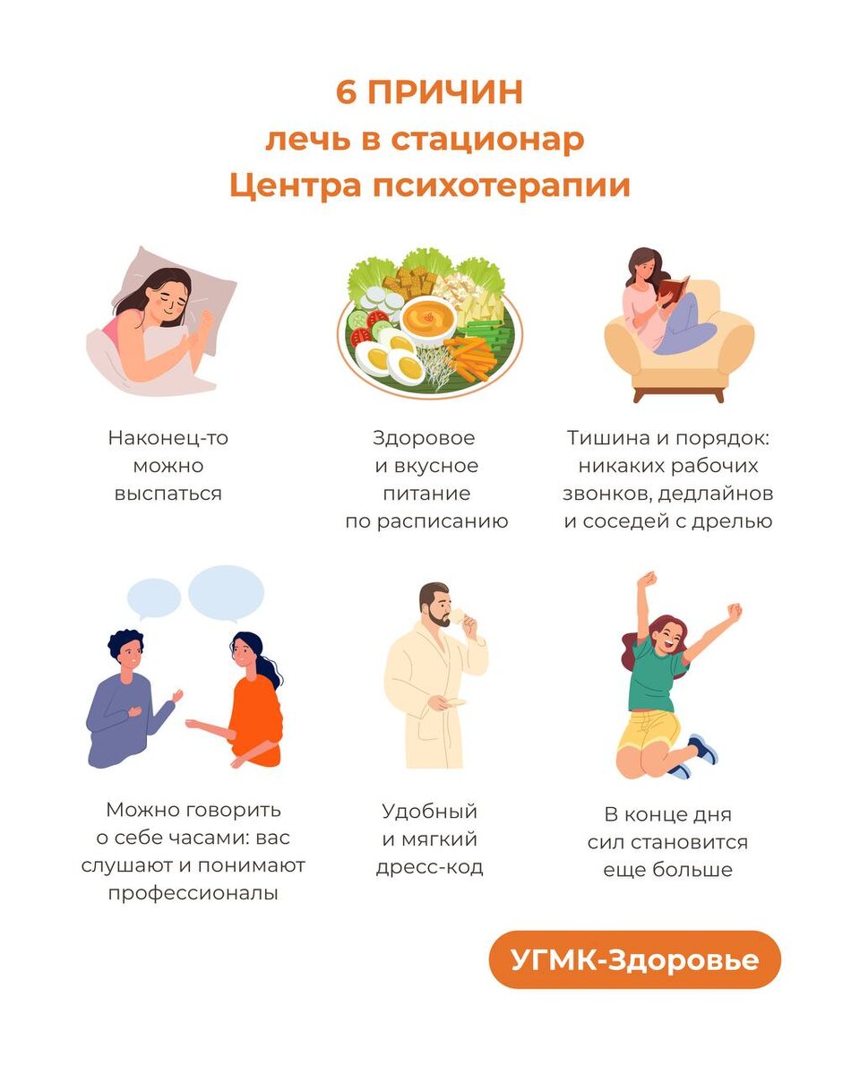 Собрали для вас 6 причин для восстановления в Центре психотерапии и психиатрии «УГМК-Здоровье».